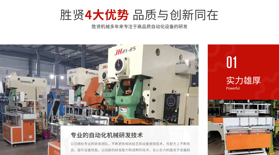 東莞市勝賢機械設備有限公司,是一家專業從事金屬制罐包裝行業的整套自動化設備和模具開發、制造與銷售的公司,擁有成熟的技術和創新開發能力。我們擁有有一批多年從事設計、研究開發的工程師,和設備、模具制作的技術人才。不斷推進制罐行業向高效、環保、節能、操作簡易化的方向發展。 公司主要產品:多次元機械手設備生產:含片盒蓋/底自動生產線,煙盒蓋/底自動生產線,醫藥盒蓋/底自動生產線,茶葉罐蓋圈/酒罐蓋圈自動生產線,酒罐蓋自動生產線、茶葉罐拍底自動生產線等等。 罐身自動扣骨機生產:茶葉罐/酒罐/化妝品罐/內衣罐等等. 其中多次元機械手專為兩片盒的生產和三片罐的蓋、底、蓋圈、拍底蓋等的生產而設計,...